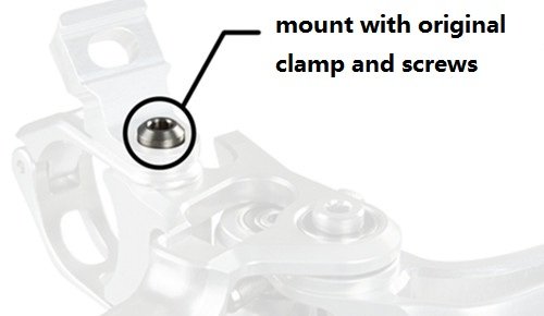 Mount with Original Clamp and ScrewInstall the clamp on the bottom of the brake and place the matchmaker between the clamp and the set screw. Just use normal torsion to tighten the screw.